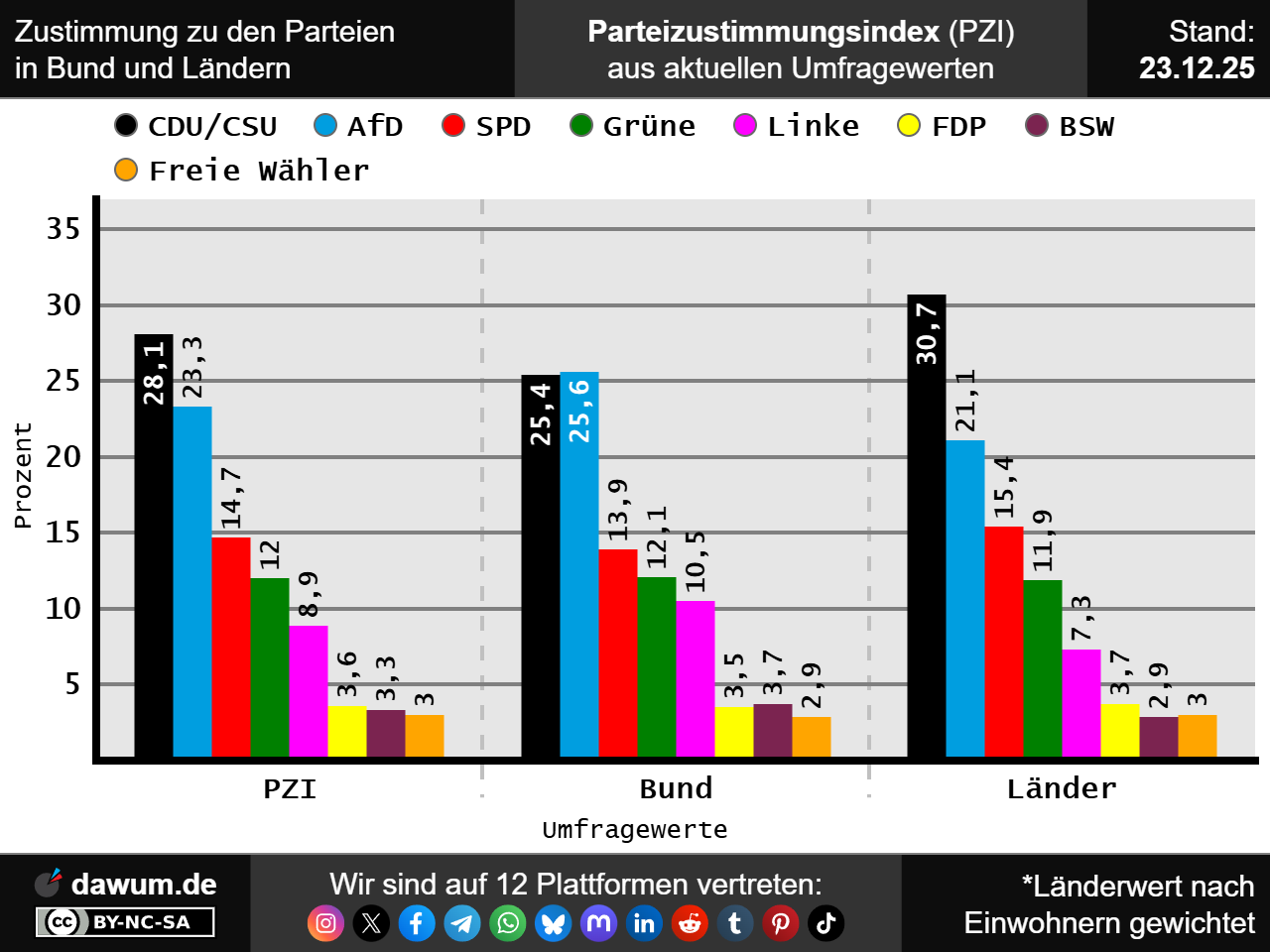 Parteizustimmungsindex (PZI) vom 13.12.2025