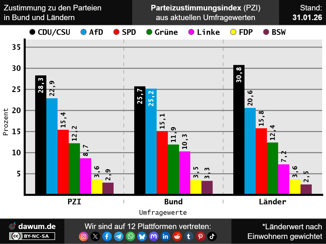 Parteizustimmungsindex (PZI) vom 20.01.2026