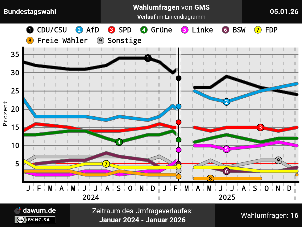 Umfrageverlauf bei GMS von Januar 2024 bis Januar 2026