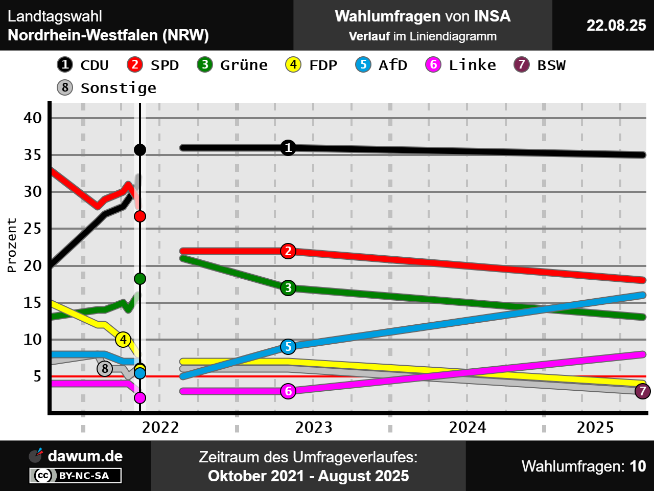 Umfrageverlauf bei INSA von Oktober 2021 bis August 2025